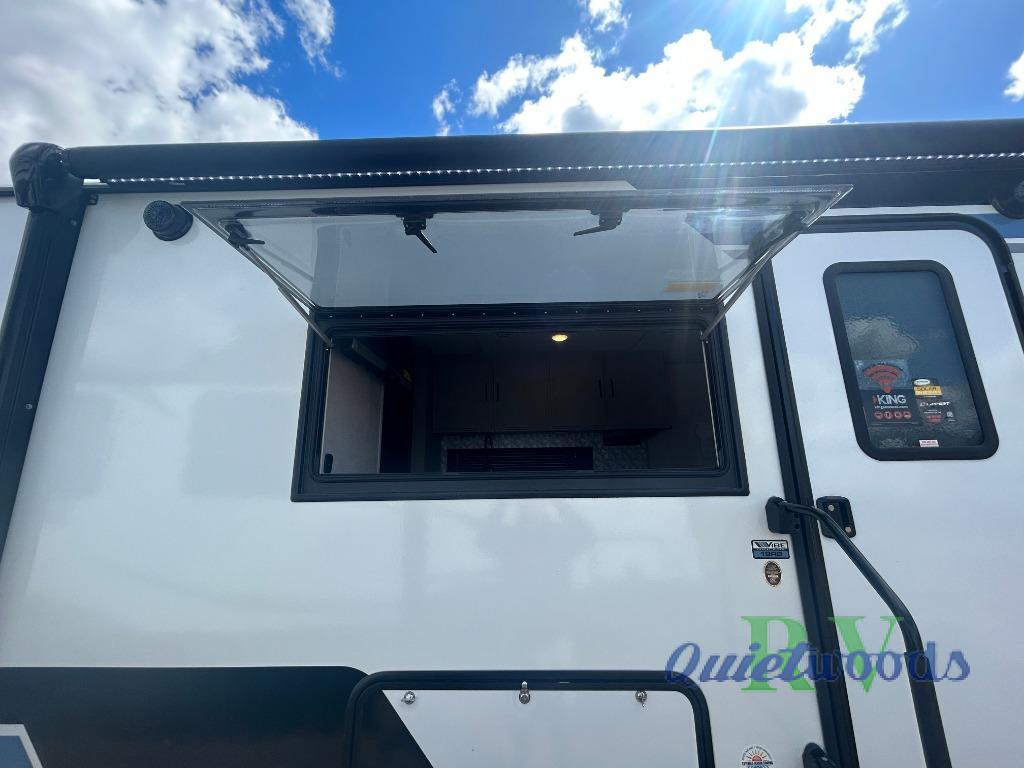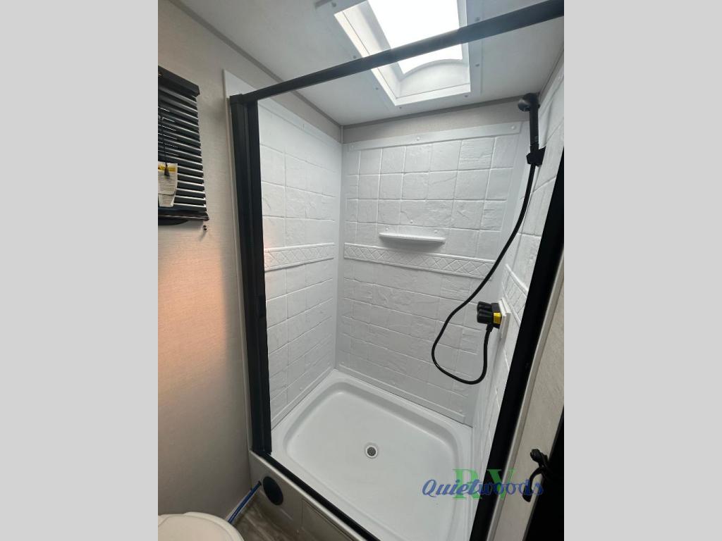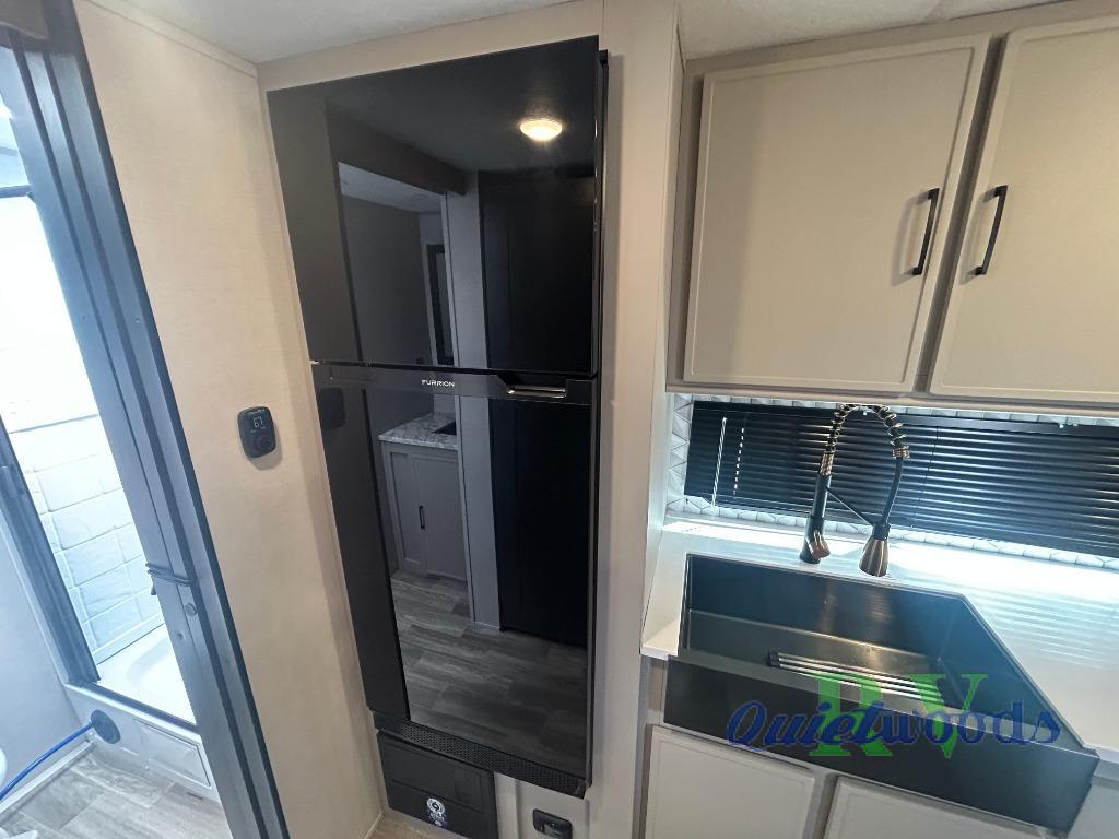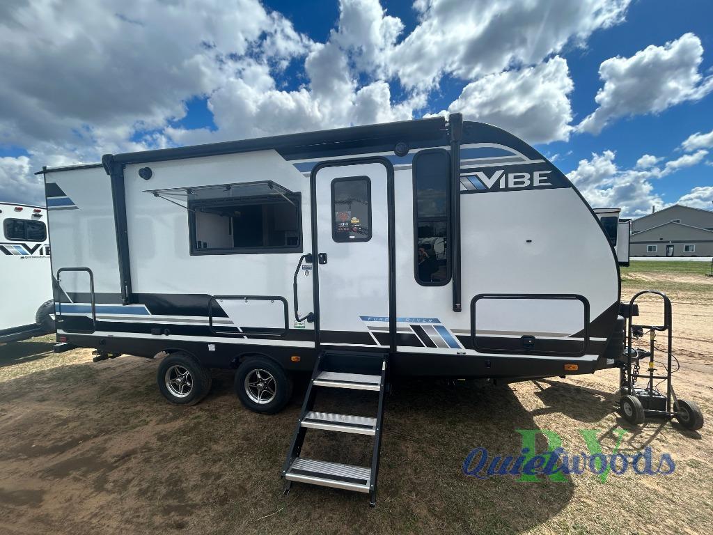 Each Vibe travel trailer by Forest River includes Hyper Lyte construction and a durable laminated "Aluma Frame" for years of use. You will also find an outside shower, a 200-watt roof mounted solar panel, and heated tank pads that will help extend your camping season. The Reserve Package has many at-home features you are sure to enjoy, like the decorative window treatments, solid surface countertops, new black chef's appliance package with an air fryer, and more! These models also include cable and satellite prep and a digital TV antenna with a booster so you can stay connected to the outside world if you choose. Make the easy choice and choose a Vibe travel trailer today!