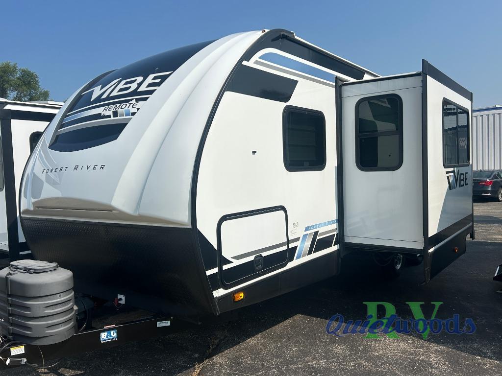 Each Vibe travel trailer by Forest River includes Hyper Lyte construction and a durable laminated "Aluma Frame" for years of use. You will also find an outside shower, a 200-watt roof mounted solar panel, and heated tank pads that will help extend your camping season. The Reserve Package has many at-home features you are sure to enjoy, like the decorative window treatments, solid surface countertops, new black chef's appliance package with an air fryer, and more! These models also include cable and satellite prep and a digital TV antenna with a booster so you can stay connected to the outside world if you choose. Make the easy choice and choose a Vibe travel trailer today!