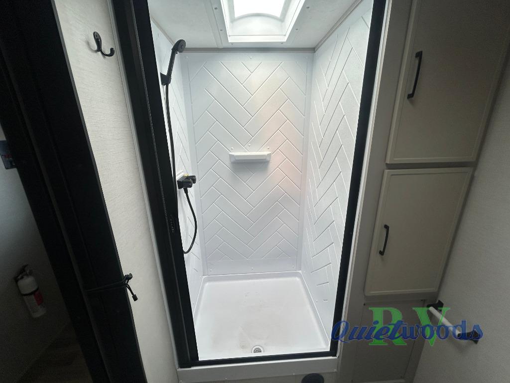 Each Vibe travel trailer by Forest River includes Hyper Lyte construction and a durable laminated "Aluma Frame" for years of use. You will also find an outside shower, a 200-watt roof mounted solar panel, and heated tank pads that will help extend your camping season. The Reserve Package has many at-home features you are sure to enjoy, like the decorative window treatments, solid surface countertops, new black chef's appliance package with an air fryer, and more! These models also include cable and satellite prep and a digital TV antenna with a booster so you can stay connected to the outside world if you choose. Make the easy choice and choose a Vibe travel trailer today!