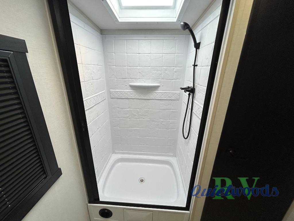 With any Wildwood Heritage Glen travel trailer by Forest River, the quality construction, attention to detail and design along with a bright and welcoming interior allows you to relax in comfort with conveniences while exploring outdoors. Each model includes a WeatherShield one piece fiberglass roof, Maxxis radial tires, and an enclosed underbelly with 12V tank heaters on all holding tanks for added protection. You will appreciate the on-demand tankless water heater, along with the 15K BTU Quite Cool A/C and 50 Amp service with a brace for a second A/C. There is an outside shower with hot and cold water, solar prep, a power tongue jack, plus many more exterior conveniences. Head inside to enjoy matte gold hardware, wood door casings in place of plastic door casings, and full length barreled ceilings for additional head room.